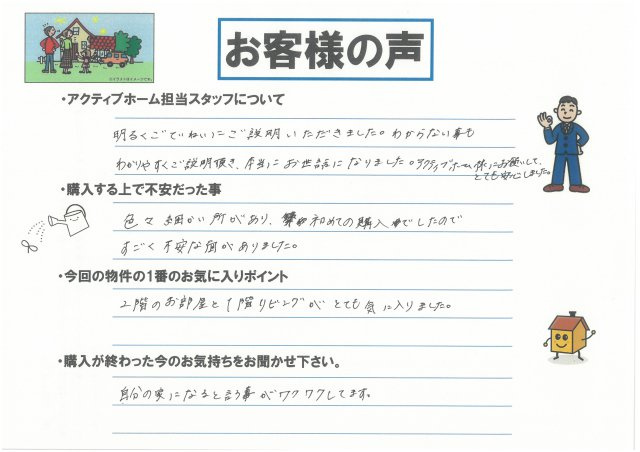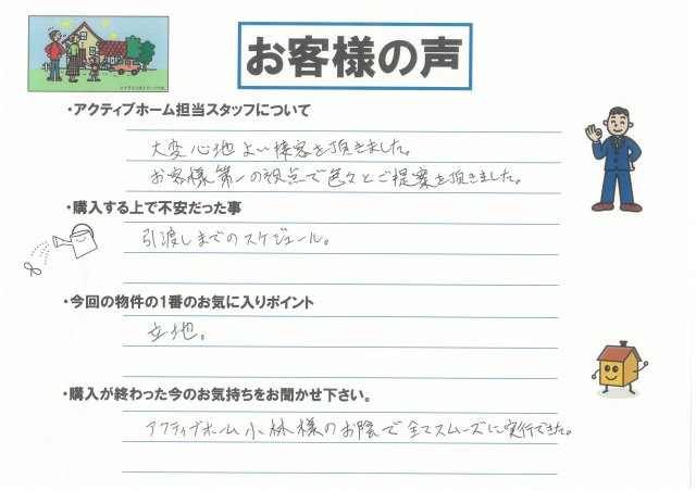 - 売買契約にあたりわかりやすく説明して頂きいつもベスト選択に感謝しています。